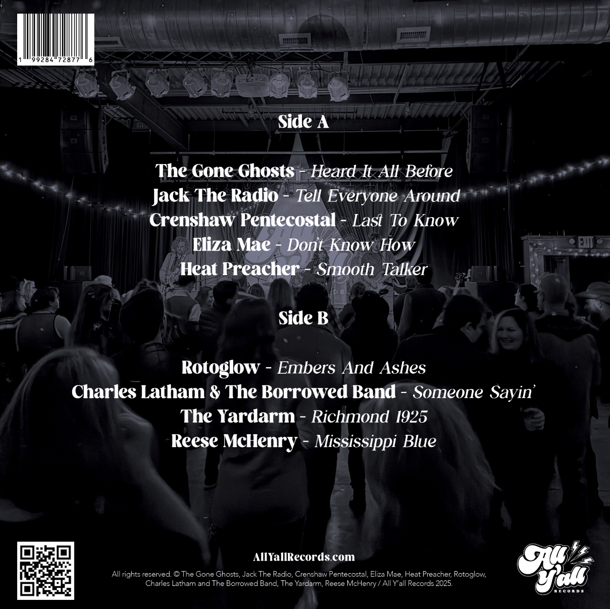 All Y’all Records: Volume One is officially up for pre-order! This limited-edition vinyl features 9 new and unreleased tracks from some of our favorite artists on the label—including The Gone Ghosts, Jack the Radio, Crenshaw Pentecostal, Eliza Mae, Heatpreacher, Rotoglow, Charles Latham and the Borrowed Band, The Yardarm, and a beautiful track from the late, great Reese McHenry.Locally pressed right here in Raleigh by Pour House Pressing and dropping during Hopscotch Festival weekend.Grab yours before they’re gone:👉
